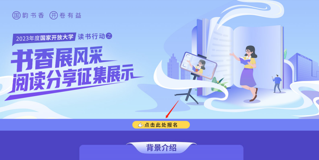 1. 打开电脑/手机浏览器,输入活动官网:https://le.ouchn.cn/event/read2023,或用微信扫描下方二维码进入。