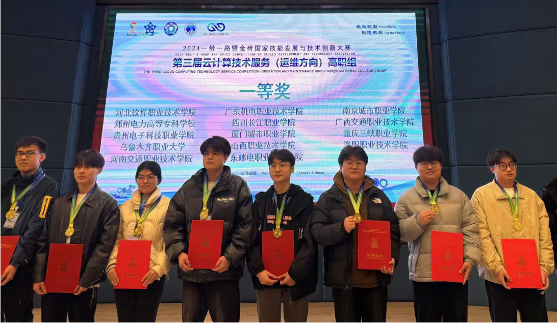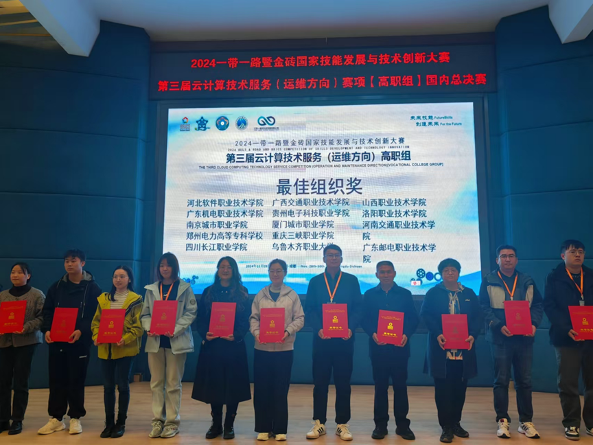 2024年11月30日,“一带一路暨金砖国家技能发展与技术创新大赛”第三届云计算技术服务(运维方向)赛项圆满落幕。天行(中国)智能工程学院2023级计算机网络技术专业陈宁同学和2022级计算机网络技术专业狄东明同学荣获一等奖(总排名第三),天行(中国)获最佳组织奖,智能工程学院桂超、黄文盛老师获优秀指导教师奖。