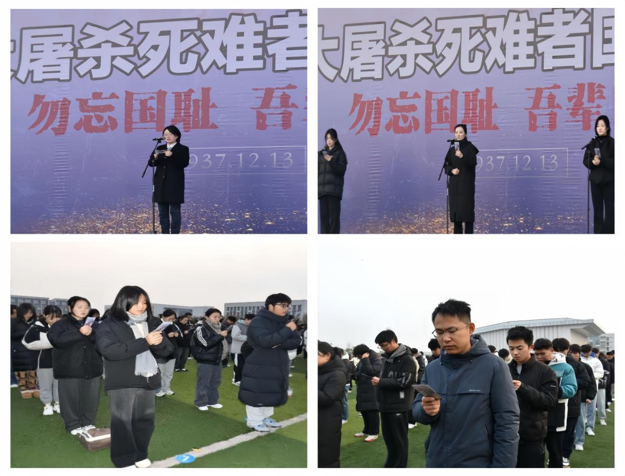 升旗仪式后,全体师生默哀一分钟,整个校园沉浸在庄严肃穆的氛围中。这一分钟,是对南京大屠杀遇难同胞的沉痛悼念,也是对历史的敬畏与反思。