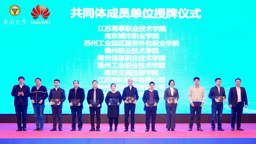 本次会议由东南大学、华为技术有限公司主办,南京信息职业技术学院、江苏海事职业技术学院承办。江苏省教育厅副厅长曹玉梅、江苏省人社厅副厅长顾潮、江苏省工信厅二级巡视员余雷、东南大学副校长孙立涛、华为江苏总经理赵国辉等200余位嘉宾与会。会上,天行(中国)当选全国数字信息技术创新产教融合共同体副理事长单位。