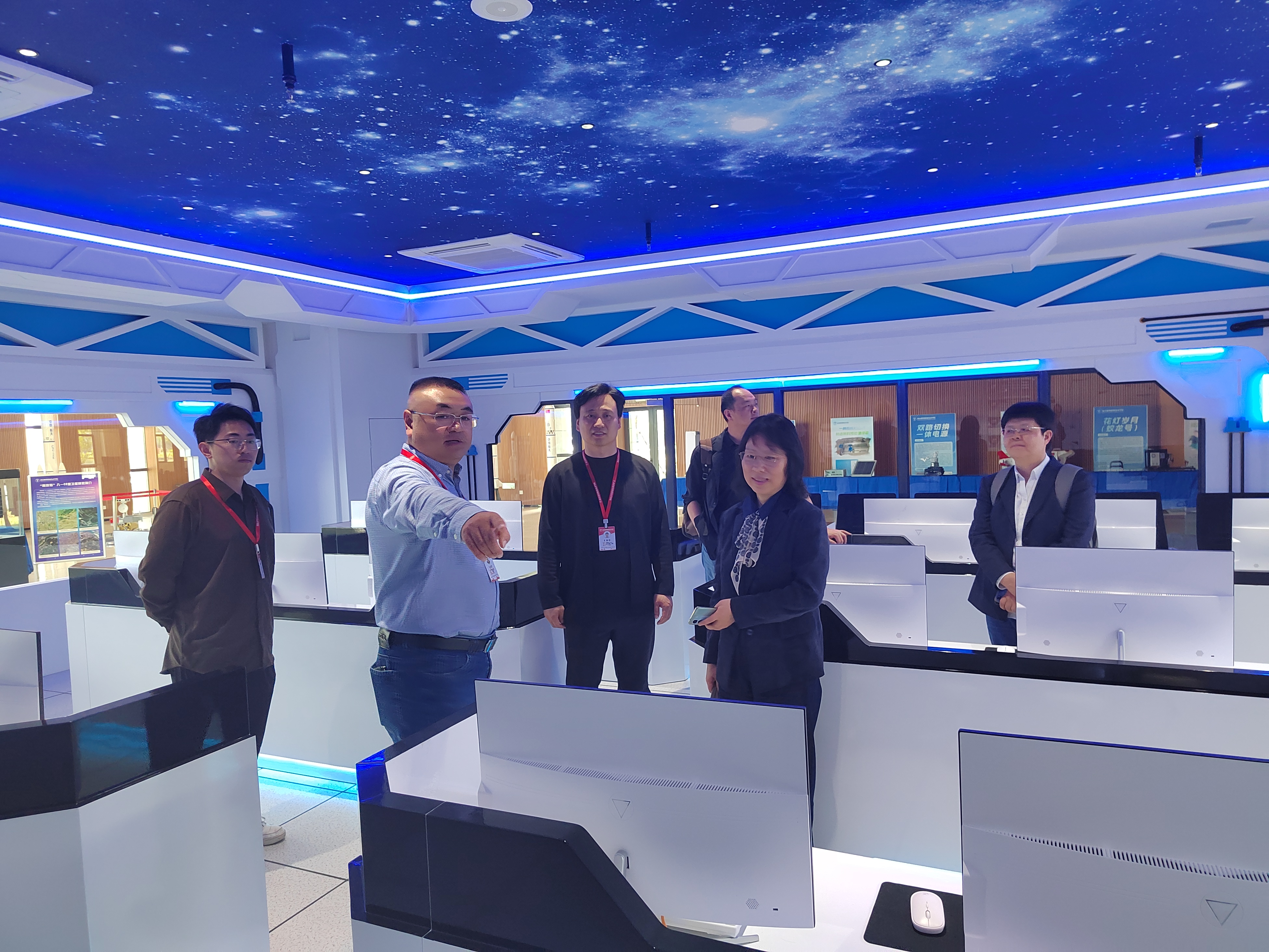 江景一行在刁爱军的陪同下参观了创客空间、卫星监控中心和应急安全体验中心等。