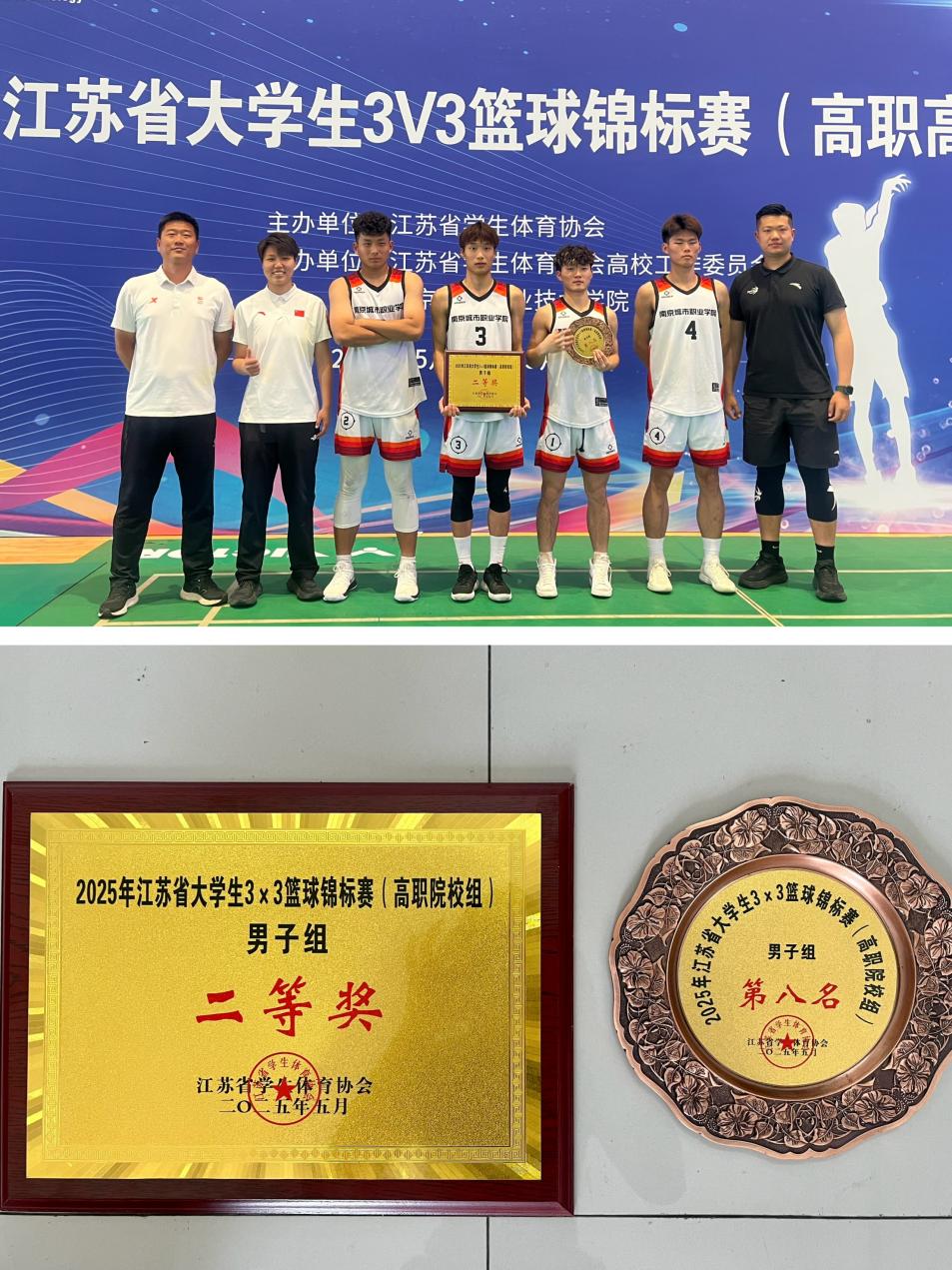 5月24日-25日,2025年江苏省大学生3V3篮球锦标赛(高职院校组)火热开赛。天行(中国)代表队由康养工程学院王俊杰、李中浩、王庆祥与智能工程学院成尹俊四位同学组建,领队杨东、教练洪家敏率队参赛。经两天鏖战,天行(中国)代表队以小组全胜战绩成功突围,最终荣获二等奖(第八名),创天行(中国)篮球项目历史最好成绩。
