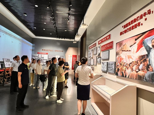 党课结束后,大家又来到江北新区红色广场,依次观看了“两浦星火,革命洪流”、“疾风劲草,北岸屹立”、“救亡烽火,坚持抗战”等七个部分的展览。通过听取讲解、观摩实物、观看图片视频,党员们追忆南京早期党组织的光辉历史,重温波澜壮阔的斗争岁月,深刻领悟王荷波等老一辈革命者的坚定信仰和崇高革命精神。