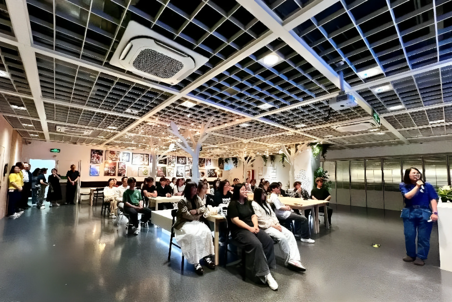 在霍光耀陪同下,孙朝晖一行走进数字文创学院与南京宜家共创课程的现场教学课堂。在这里,大家沉浸式感受企业在产品设计、视觉指引、家居装饰及视觉陈列等方面的前沿理念。从创意十足的产品构思到精妙绝伦的视觉呈现,南京宜家在职业教育领域积极探索的创新实践,赢得了大家高度赞誉。