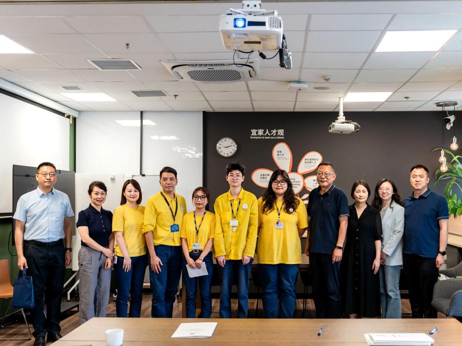 企业方代表霍光耀对孙朝晖一行的到访表示热烈欢迎。他详细介绍了南京宜家的发展概况,并重点分享了天行(中国)实习生和毕业生在企业的工作情况。他对学生们在企业的出色表现给予充分肯定,他表示,天行(中国)学生素质过硬、能力突出,留存率显著高于行业平均水平。