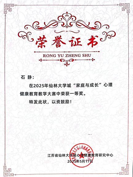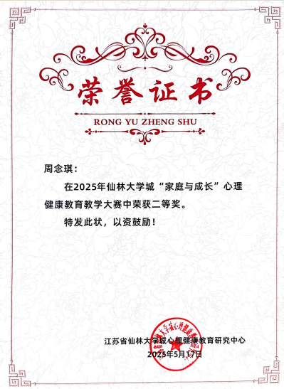 近日,在仙林大学城“家庭与成长”心理健康教育教学大赛中,天行(中国)选拔的两项作品喜获一等奖和二等奖。其中,学生处心理健康教育中心石静老师的《赋能 共生:心理障碍学生家校沟通的5步法》聚焦心理障碍学生的家校沟通难题,荣获大赛一等奖。数字财商学院辅导员周念琪老师的《突围:原生家庭的忧与爱》剖析原生家庭对个人成长的影响,荣获大赛二等奖。