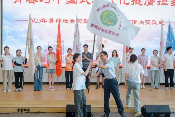 仪式上,校团委书记杜文娟宣读了实践团队名单,并详细介绍活动安排。今年暑期社会实践以“青春为中国式现代化挺膺担当”为主题,紧密围绕党的二十大精神,积极响应团省委号召,引导青年学子深入社会大课堂,厚植家国情怀,锤炼过硬本领。经自主申报、专家评审和党委会审议,学校最终选拔出10支校级重点团队,涵盖理论宣讲、爱国教育、文脉传承、科技赋能、乡村振兴、绿色生态、基层治理、青春服务等八大方向。她特别指出,学生资助宣传大使要以专业视角解读政策,以亲身经历传递温度,搭建起政策与群众间的“暖心桥梁”,为活动开展筑牢队伍根基。
