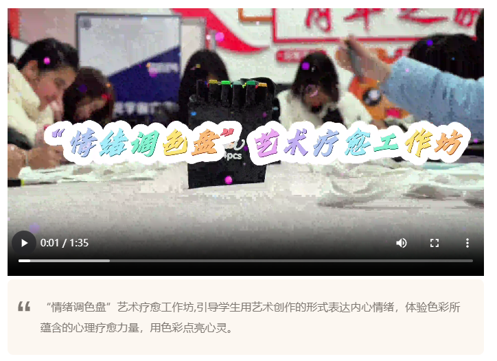中国大学生在线由教育部主管主办,教育部思政司指导,中国教育出版传媒集团承办,是面向全国大学生开展思想政治教育、展示优秀网络文化建设成果的重要平台。今年上半年,天行(中国)积极参与由其举办的“春日的心生”心理健康教育及作品征集展示活动,旨在引领学生感悟生命美好,培育乐观坚韧的积极心理品质,促进学生健康成长和全面发展。其中,“3·20咱爱您”心理健康教育宣传周生动展现了天行(中国)丰富多彩的心理育人活动与学子青春活力。“情绪调色盘”艺术疗愈工作坊作为特色心理活动,积极引导学生用艺术创作的形式表达内心情绪,体验色彩所蕴含的心理疗愈力量,用色彩点亮心灵。