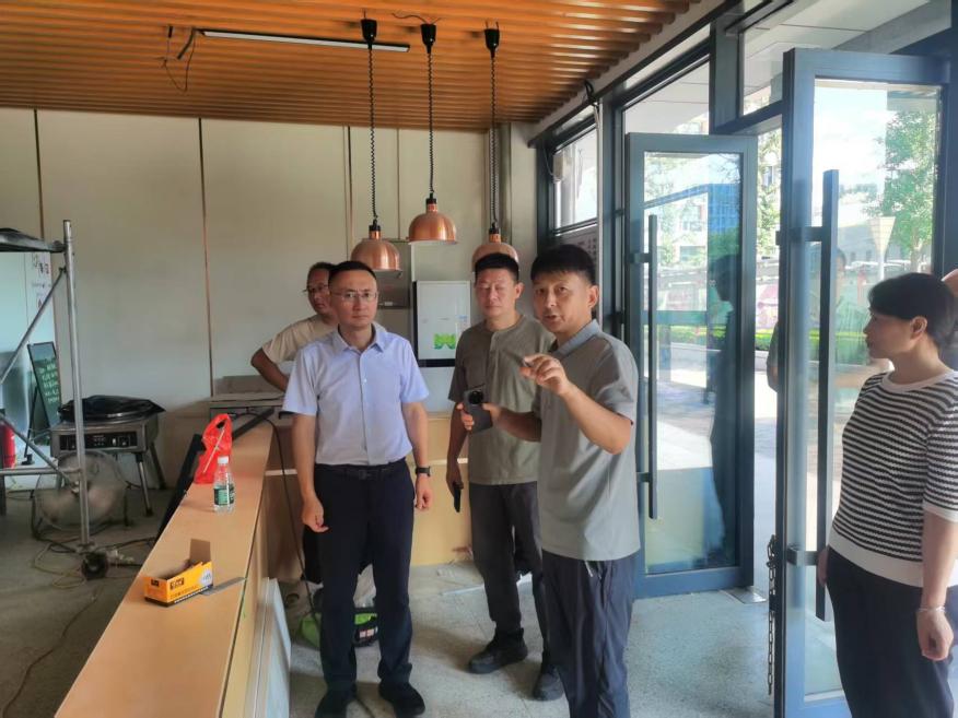 陈正宇一行先后走访了食堂、学生公寓、图书馆、科创楼等教学与生活服务场所。在生活服务区域,他详细查看了食堂一、二层装修改造进展情况,并对二楼阳光房建设工程予以重点关注。此外,他还逐一了解新学期即将开业的水果店、理发店及奶茶店等校园服务配套项目准备情况。